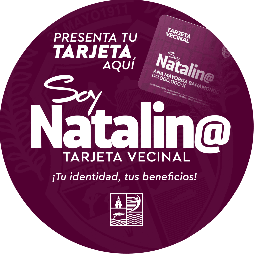 Tarjeta Vecinal de la Municipalidad de Natales es un beneficio exclusivo para los residentes de la comuna. Se trata de una tarjeta personal e intransferible que acredita a su portador como vecino de la comuna de Natales y le permite acceder a descuentos y beneficios en comercios y servicios locales, así como en actividades organizadas por el municipio.